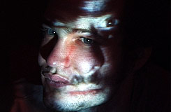 projiziert von Videobeamern, die das Gesicht des jeweils